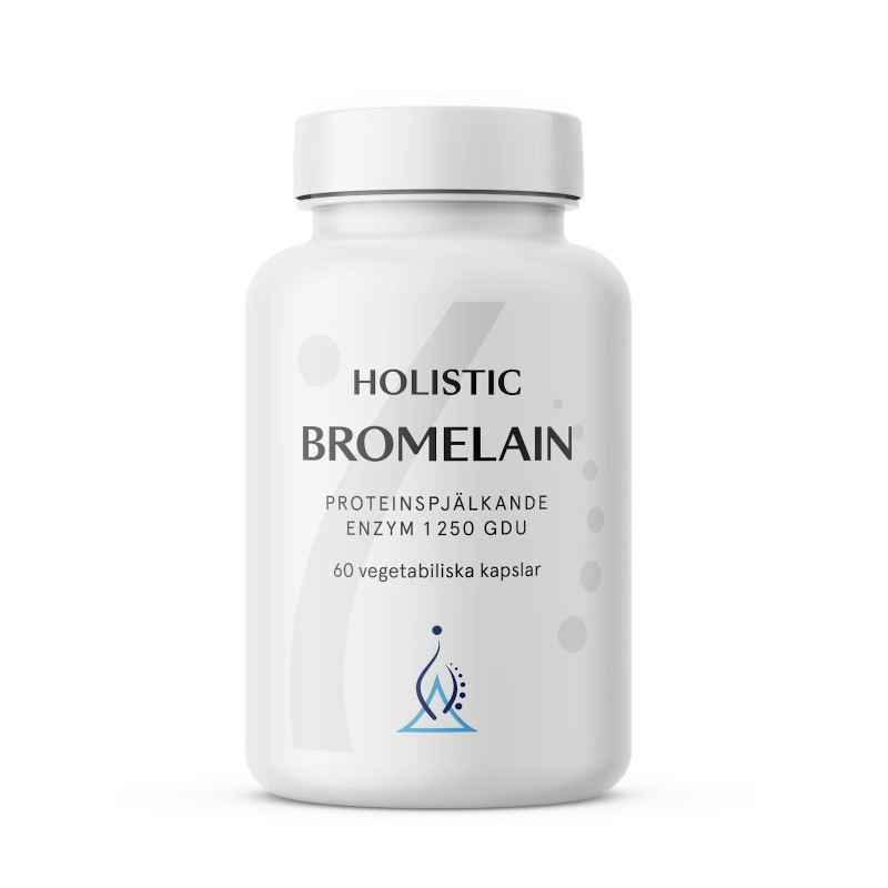 Bromelain är en blandning av proteaser (enzymer som bryter ned proteiner) som naturligt förekommer i ananas (Ananas comosus). Holistic Bromelain kommer från stammen på ananasen, som är särskilt rik på ämnet. Bromelain har använts traditionellt i många kulturer för sina olika hälsofrämjande egenskaper.