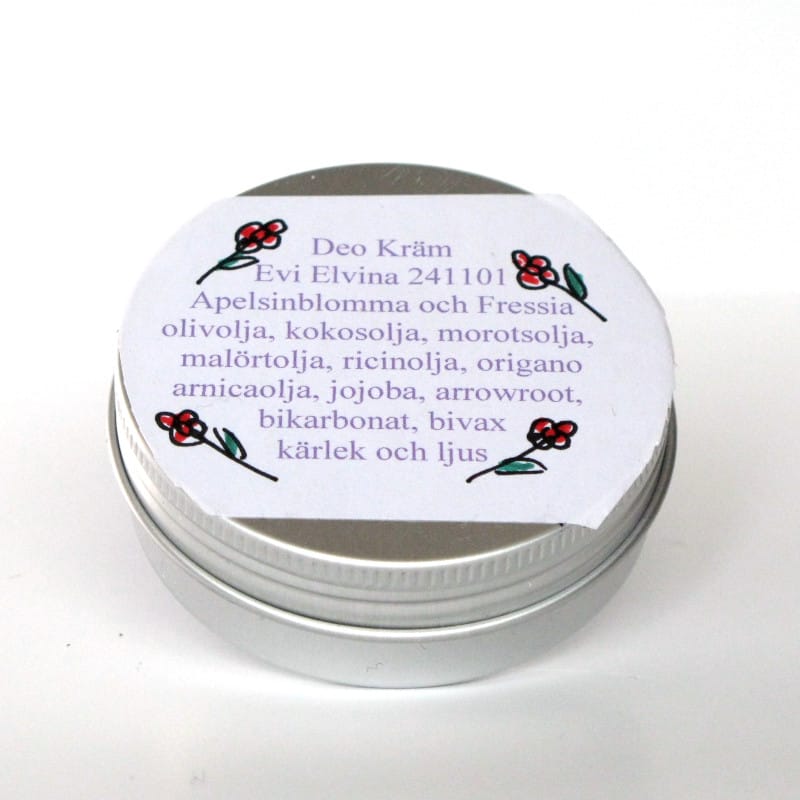 Deokräm med helt naturliga ingredienser. Vi gillar sammansättningen. Mycket effektiv. Applicera med fingret.