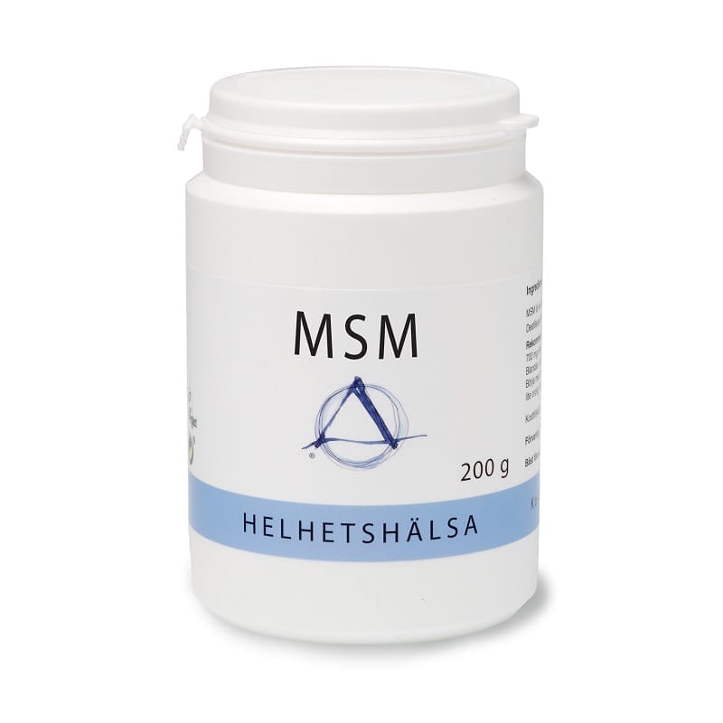 200 gr rent MSM (metylsulfonylmetan) i pulverform.