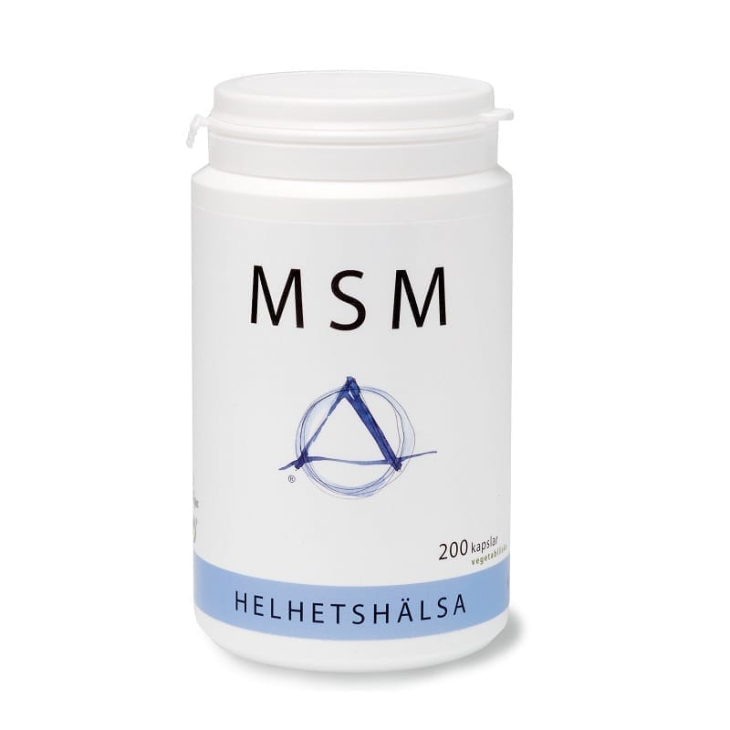 200 kapslar innehållande rent MSM (metylsulfonylmetan) i pulverform.