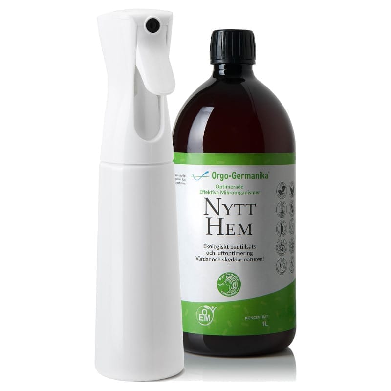 För ett skinande rent hem med Orgo-Germanika Nytt Hem, ett mångsidigt hushållsmedel av 100 % naturliga ingredienser. Innehåller effektiva mikroorganismer (EM), 16 olika levande bakteriestammar.