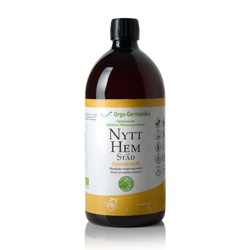 Ett ekologiskt rengöringsmedel som innehåller effektiva mikroorganismer (EM) med 16 bakteriestammar. Att rengöra med EM betyder att man jobbar helt utan kemi (tensider e t c). Det är miljövänligt och ofarligt för natur, jord, växter, djur och människor. Det går att använda på alla ytor och är fritt från kemiska rengöringsmedel. Fungerar på bland annat golv, kakel, fönster, speglar, plastytor, spisplattor, ugn, bilvård med mera. Rengöringen är ofarlig för hud och är miljövänlig då mikroorganismer förekommer naturligt och är helt ofarliga. Tar effektivt bort smuts och damm genom att mikroorganismerna håller platsen som rengörs “upptagen” för skadliga mikroorganismer. Spillvattnet som kommer ut i naturen skadar heller inte miljön, utan mikroorganismerna skapar en god balans i naturens egna bakterieflora.
