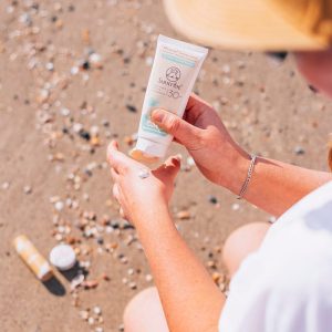 Det andra fysiska solskyddsmedlet är titandioxid. En del mineralbaserade solskydd innehåller detta. Suntribe’s gör det inte. Vi tänker att titandioxid är rätt ok, om än inte lika bra som zink.