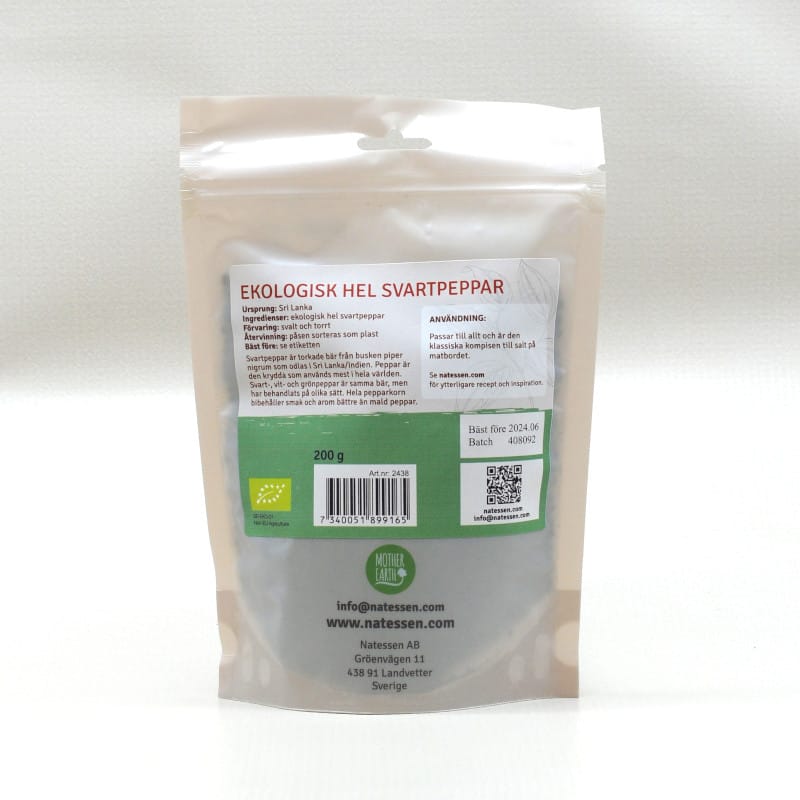 Ingredienser: ekologisk hel svartpeppar
